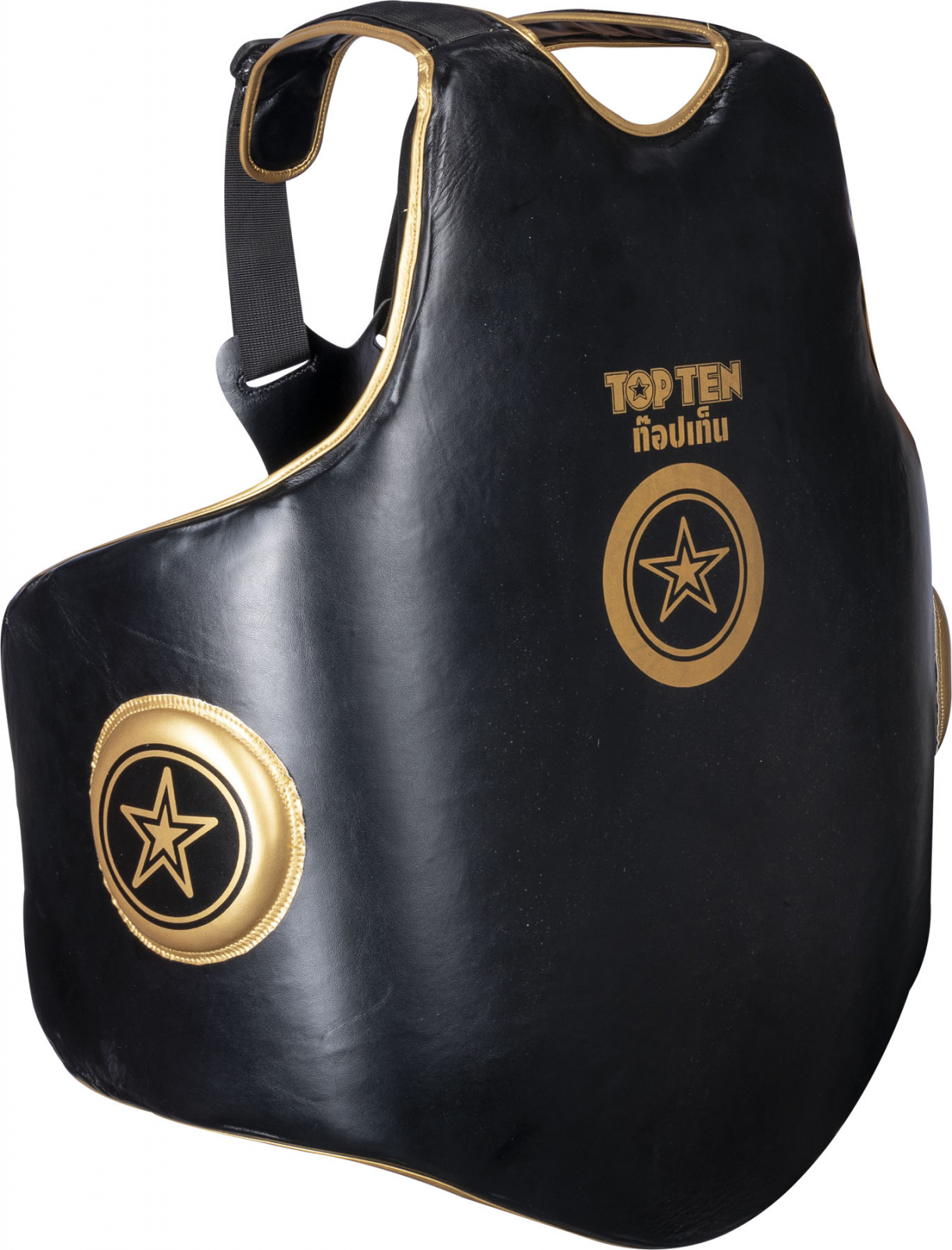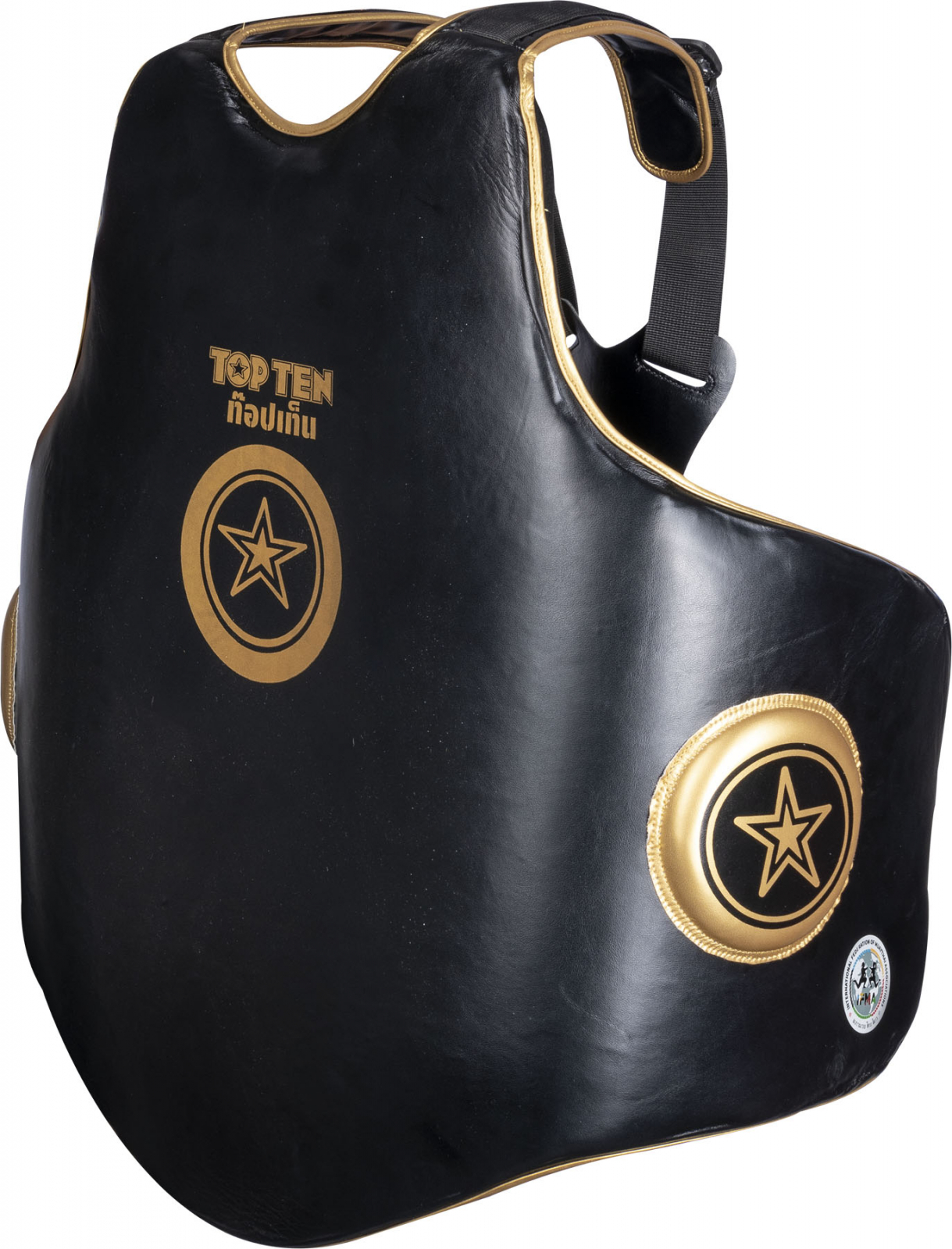 Упражненията с партньор в тренировките по муай тай са неразделна част от тренировъчната програма и винаги са предизвикателни и за двете страни. С IFMA протектора за корем „Dao“ от TOP TEN, и двете страни имат незабравимо тренировъчно изживяване при най-високите стандарти за безопасност. Формата на „Dao“ е ергономично пригодена и обхваща широки зони, благодарение на страничните крила. Протекторът „Dao“ предпазва и раменете, и врата. Поставянето и свалянето на защитната подложка е детска игра със системата от тиранти. Многобройните опции за регулиране осигуряват индивидуално адаптиране към притежателя.