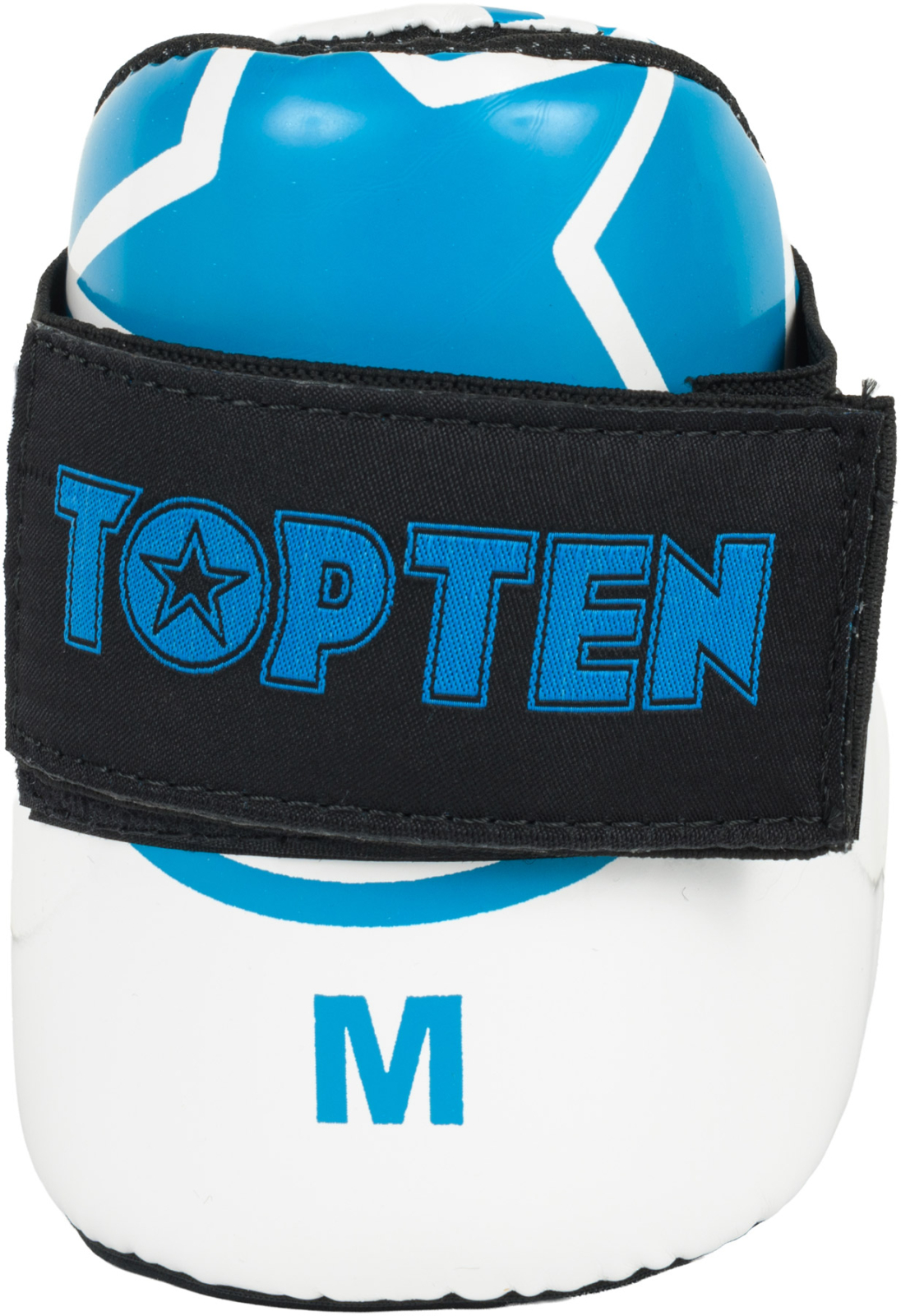 With the “Urban Arts” kick guards from TOP TEN, you'll be ready for lightning-fast footwork in kickboxing. They provide perfect protection for the ankle and instep area, while you enjoy full freedom of movement. The flexible hook and loop strap and the practical toe loops ensure a secure fit and make it easy to put on your TOP TEN kicks. The durable synthetic leather cover in a colorful “Urban Arts” design and the PPS padding guarantee reliable performance and comfort.