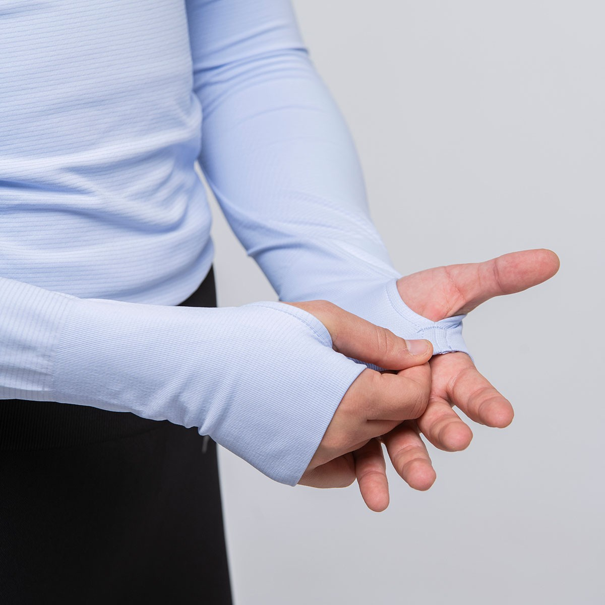 Gură pentru degetul mare pentru a menține mânecile la locul lor pe tot parcursul antrenamentului.