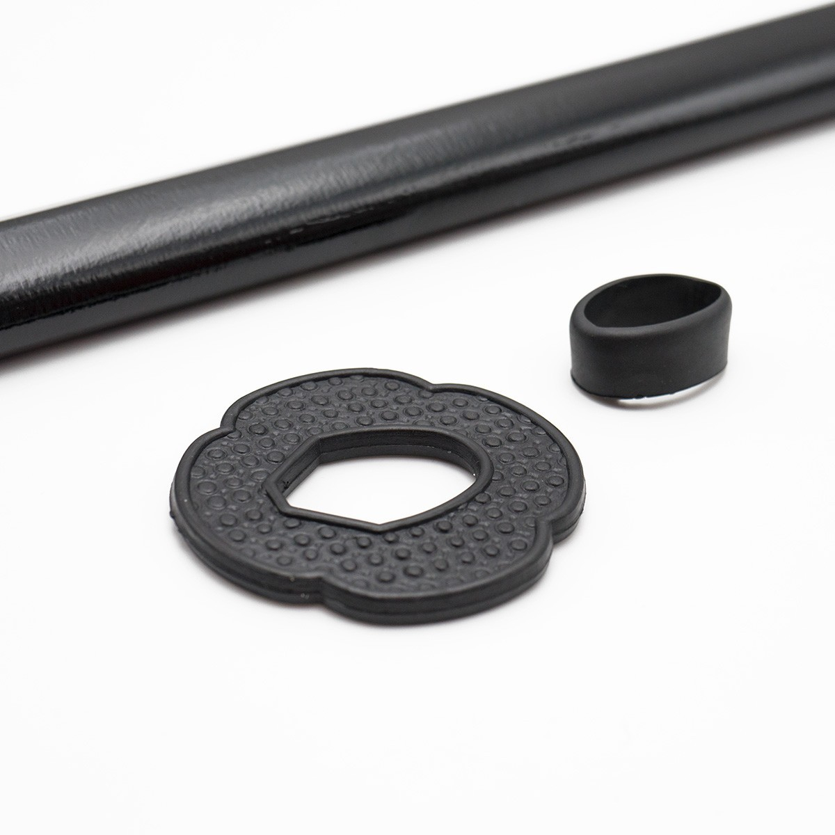 Include o Tsuba (apărătoare de sabie) neagră detașabilă.