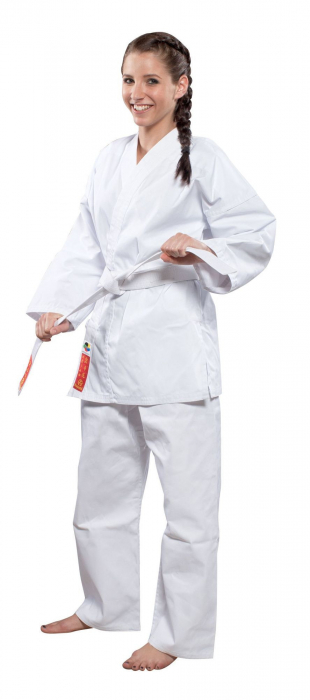 Pantalonii vin cu o bandă elastică la talie și un șiret pentru reglare, oferind o potrivire perfectă și adaptabilă fiecărui tip de corp. Costumul este ușor, ceea ce îl face ideal pentru antrenamente intense, fără a te simți împovărat. În plus, costumul include și o centură albă (obi), astfel încât să ai tot ce îți trebuie pentru a începe antrenamentele imediat.
