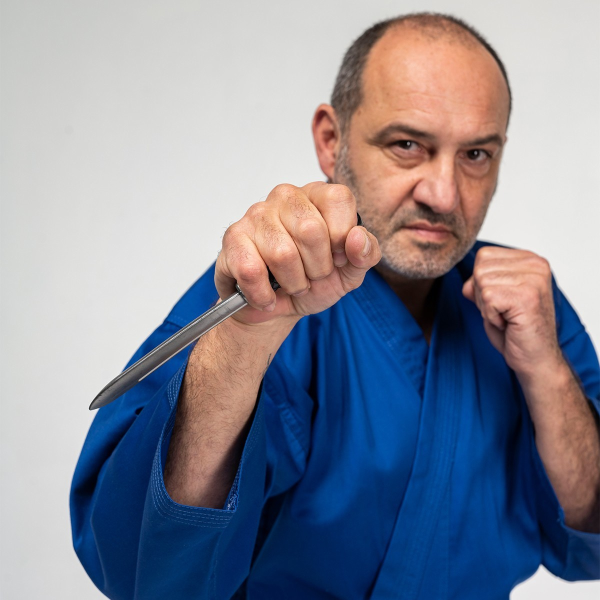 Antrenează-te în siguranță și confort cu noul cuțit de antrenament din cauciuc FUJIMAE, destinat practicării autoapărării și KravMaga. Fabricat cu greutatea și dimensiunea adecvate pentru un antrenament realist de autoapărare împotriva atacurilor cu cuțitul.