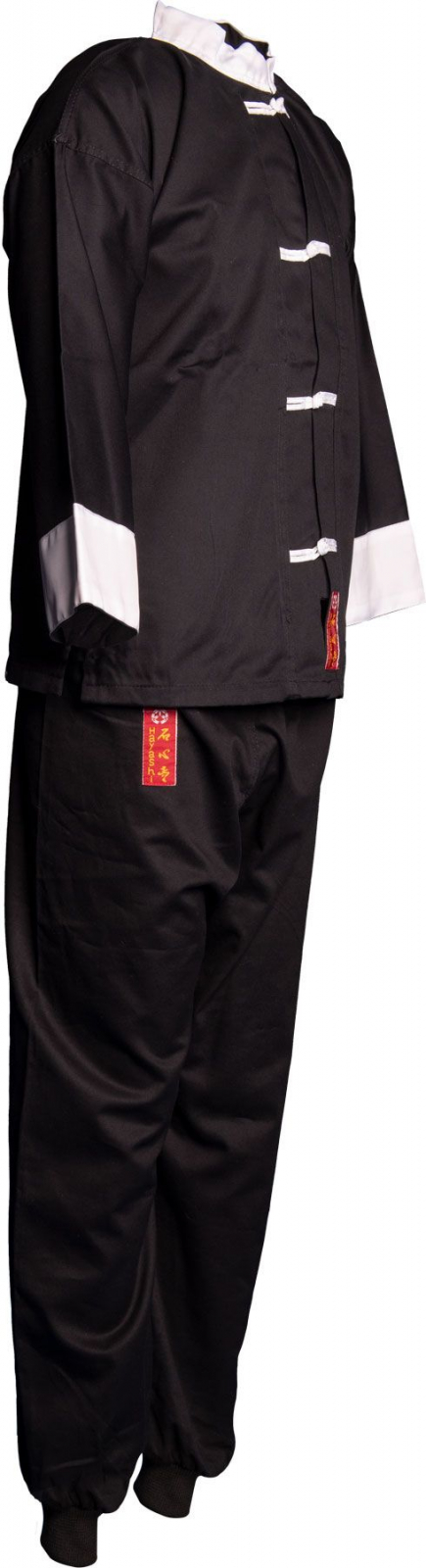 Toate in negru cu accente albe, adica costumul Kung-Fu de inalta calitate, realizat din bumbac de Hayashi. Modelul sportiv din doua piese indeplineste toate criteriile de traditie si functionalitate, iar proprietatile sale usor de intretinut asigura entuziasm pe covoras. Jacheta are inchideri tipice si o croiala casual, in timp ce pantalonii cu talie moale si mansetele finale elastice sunt confortabile de purtat.