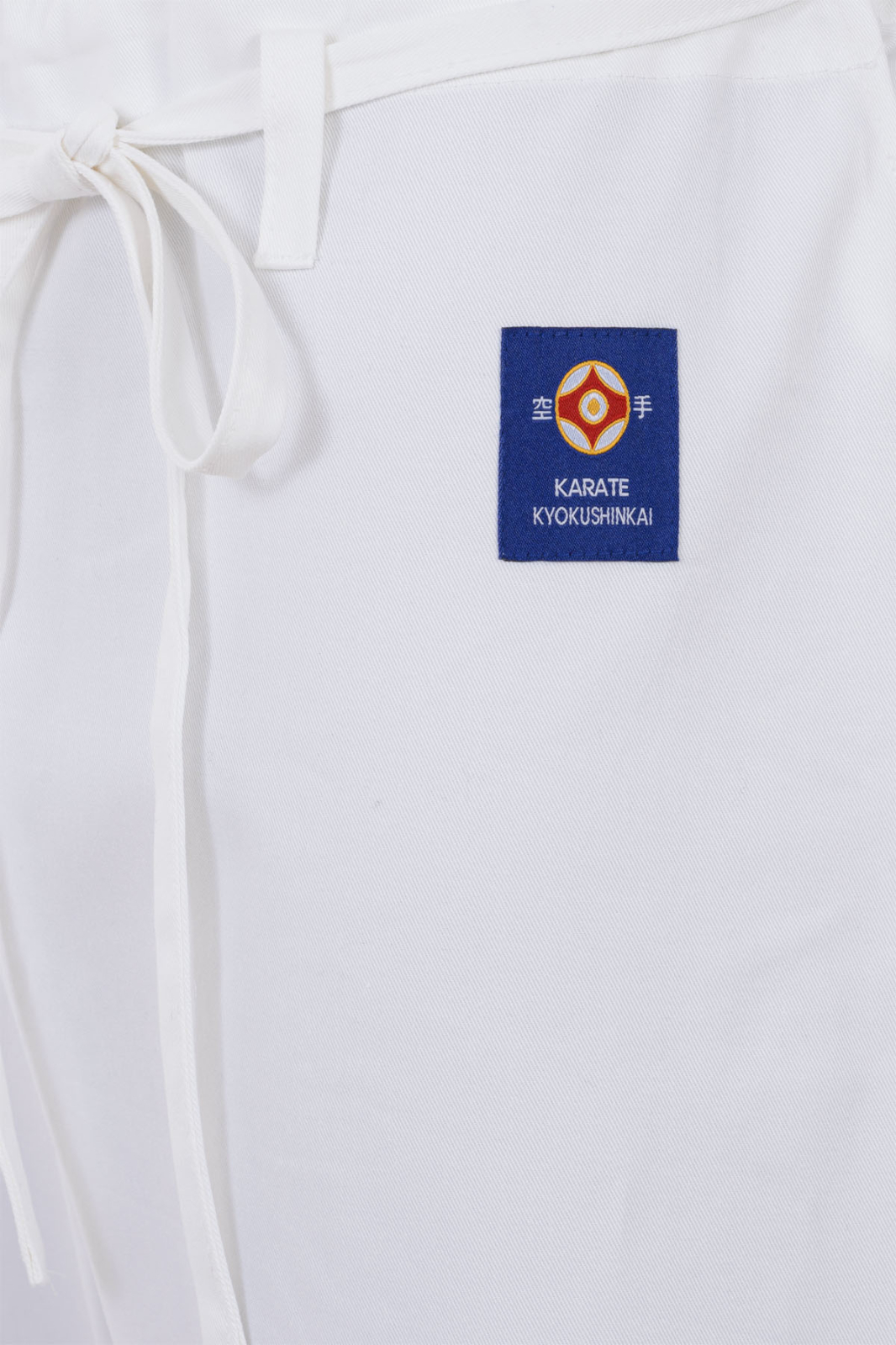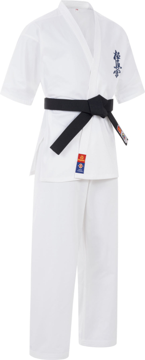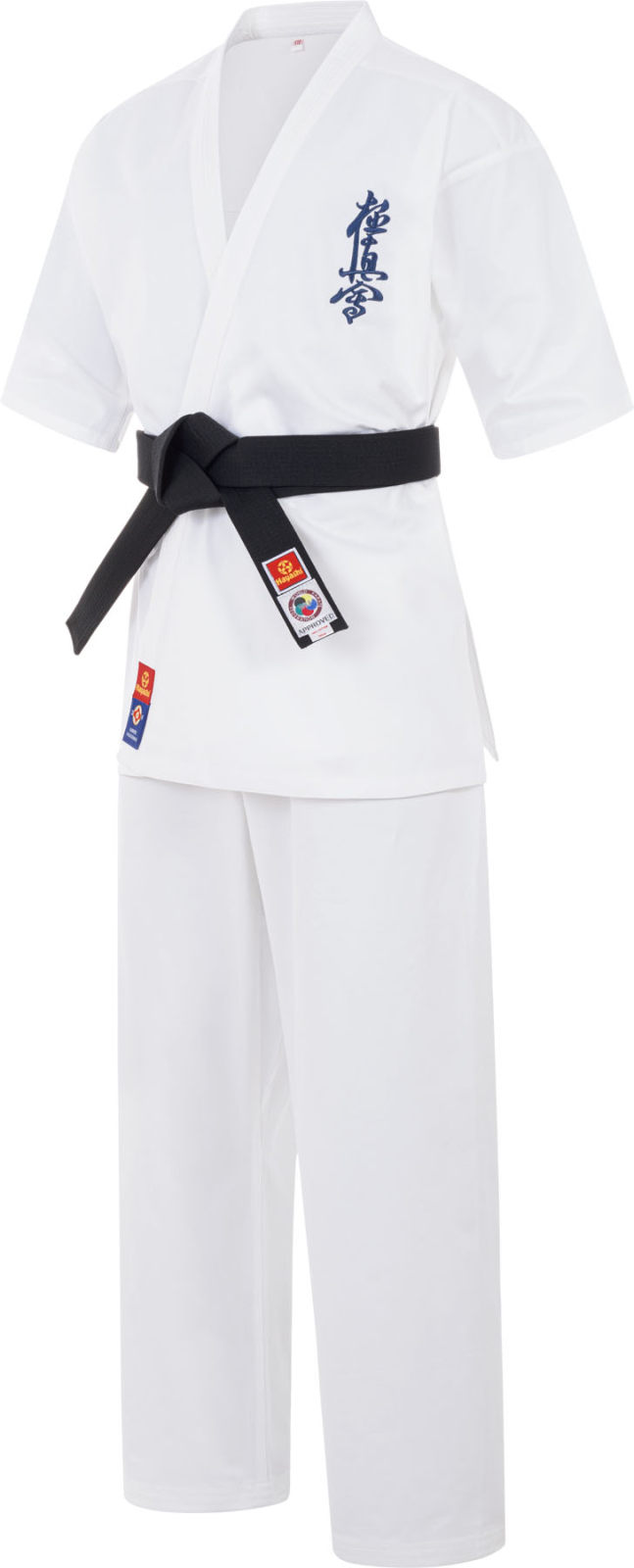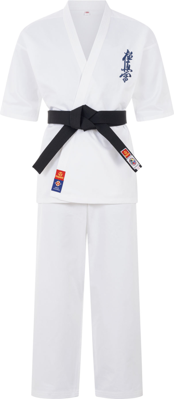Embark on your journey to ultimate truth with the Hayashi Karate-Gi "KYOKUSHINKAI." Feel the power, flexibility, and precision that this sturdy gi made of 10 oz cotton fabric gives you during every training session. Whether you're doing intense full-contact training or demanding kata, the "KYOKUSHINKAI" Karate-Gi will reliably accompany you on your journey. Its original Japanese design, wide cut, and short sleeves give you maximum freedom for every movement.