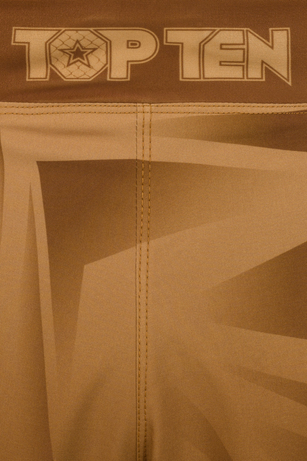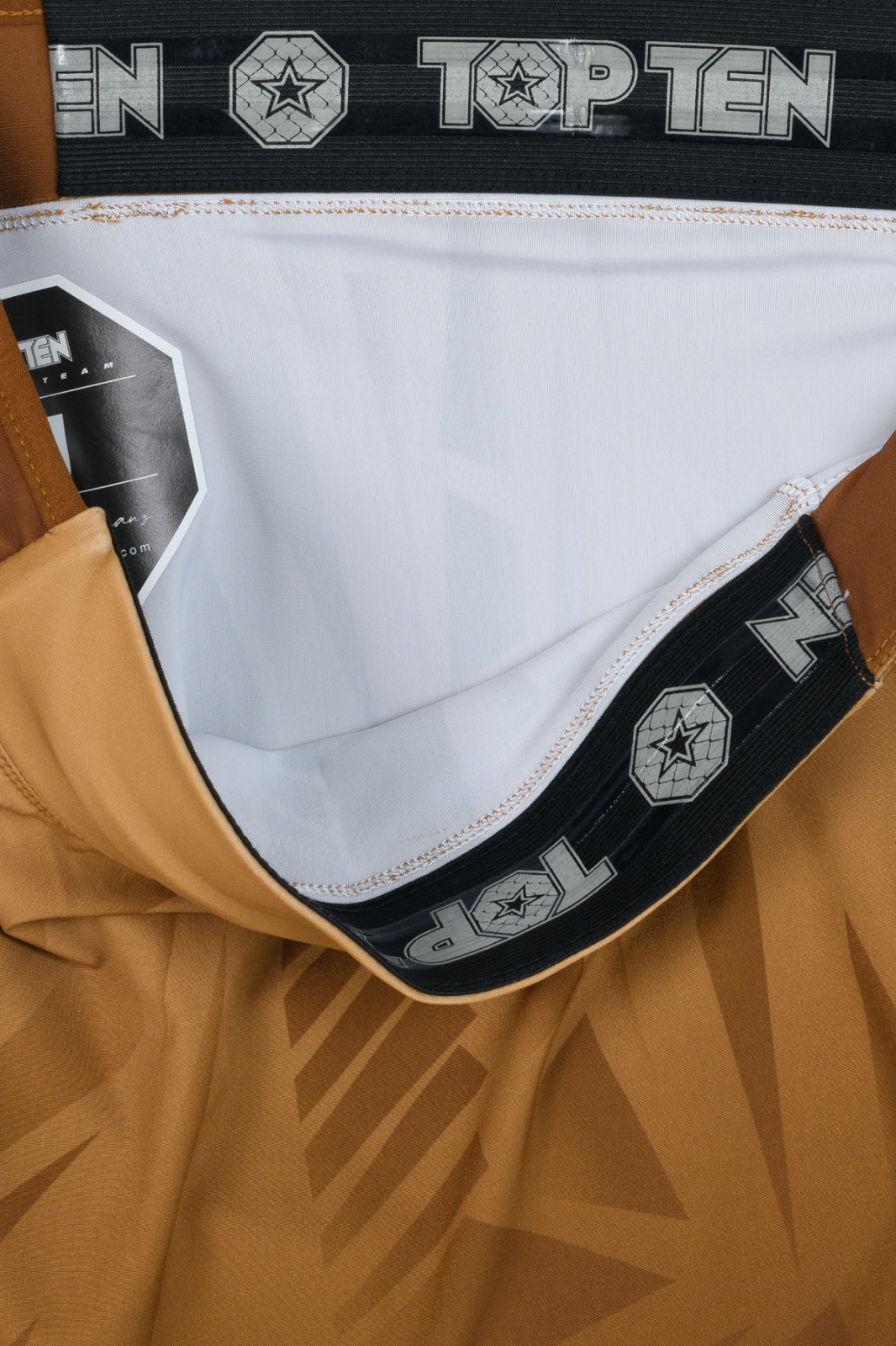 TOP TEN brings a breath of fresh air to the cage with the “Borrado.” These MMA shorts combine classic design with well-thought-out features. The integrated compression briefs support your muscles and reduce friction, making them ideal for tough training sessions. Thanks to weight-reduced functional material, the shorts are pleasantly lightweight to wear, while the high side cuts provide full freedom of movement. The “Borrado” also impresses in terms of sustainability: sublimated colors and prints save water and chemicals – good for you, better for the environment.