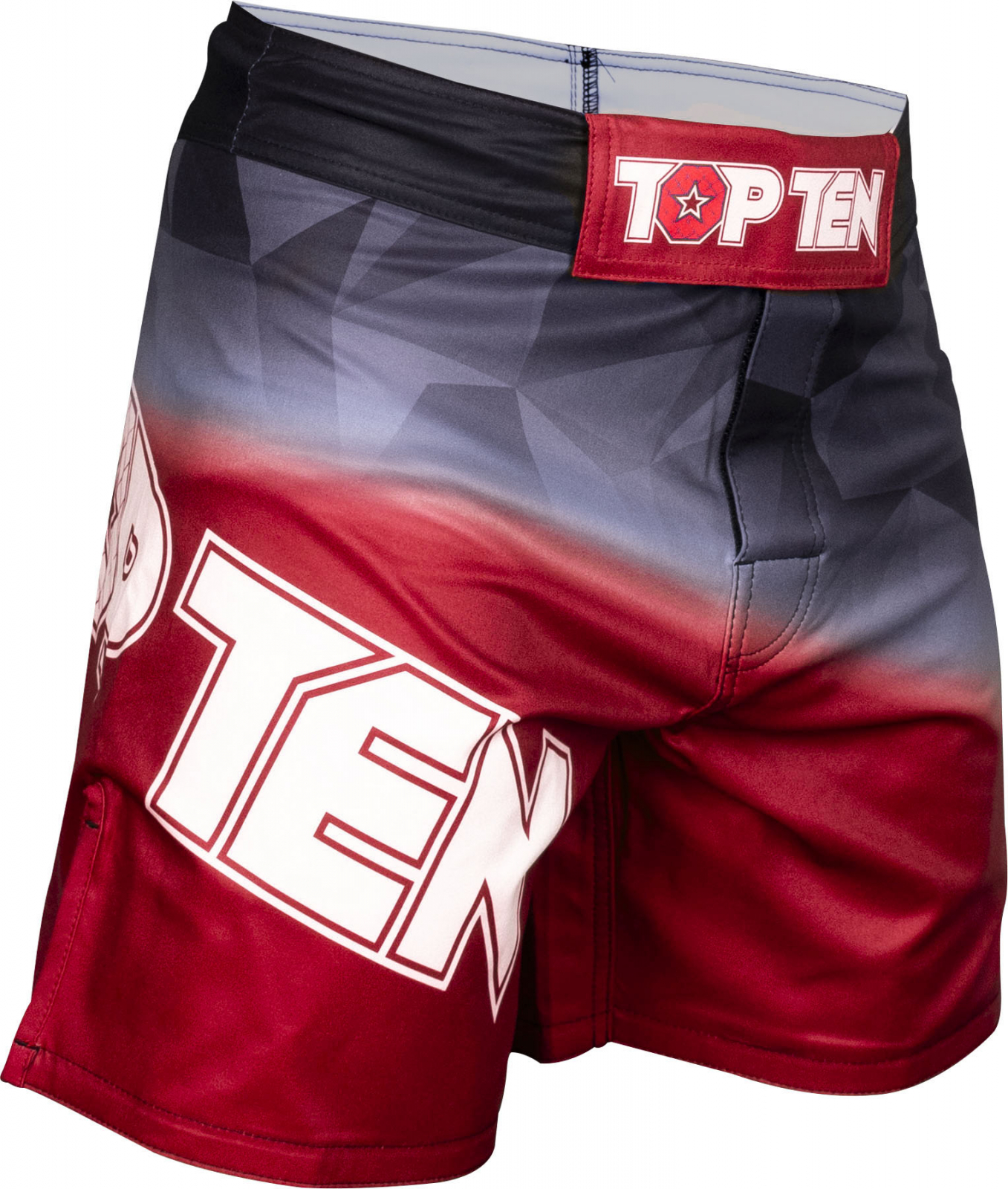 Get a functional pair of top-class trousers with the TOP TEN MMA shorts “Prism.” With an ultra-light fabric made of polyester and elastane, the pants stay dry even during strenuous activities. Moisture is removed from the skin and transported to the surface via the material, where it can evaporate unhindered. A sophisticated Velcro system replaces the zipper, and an additional drawstring guarantees the “Prism” a firm hold. The graphic elements and the typical TOP TEN company label set practical accents.