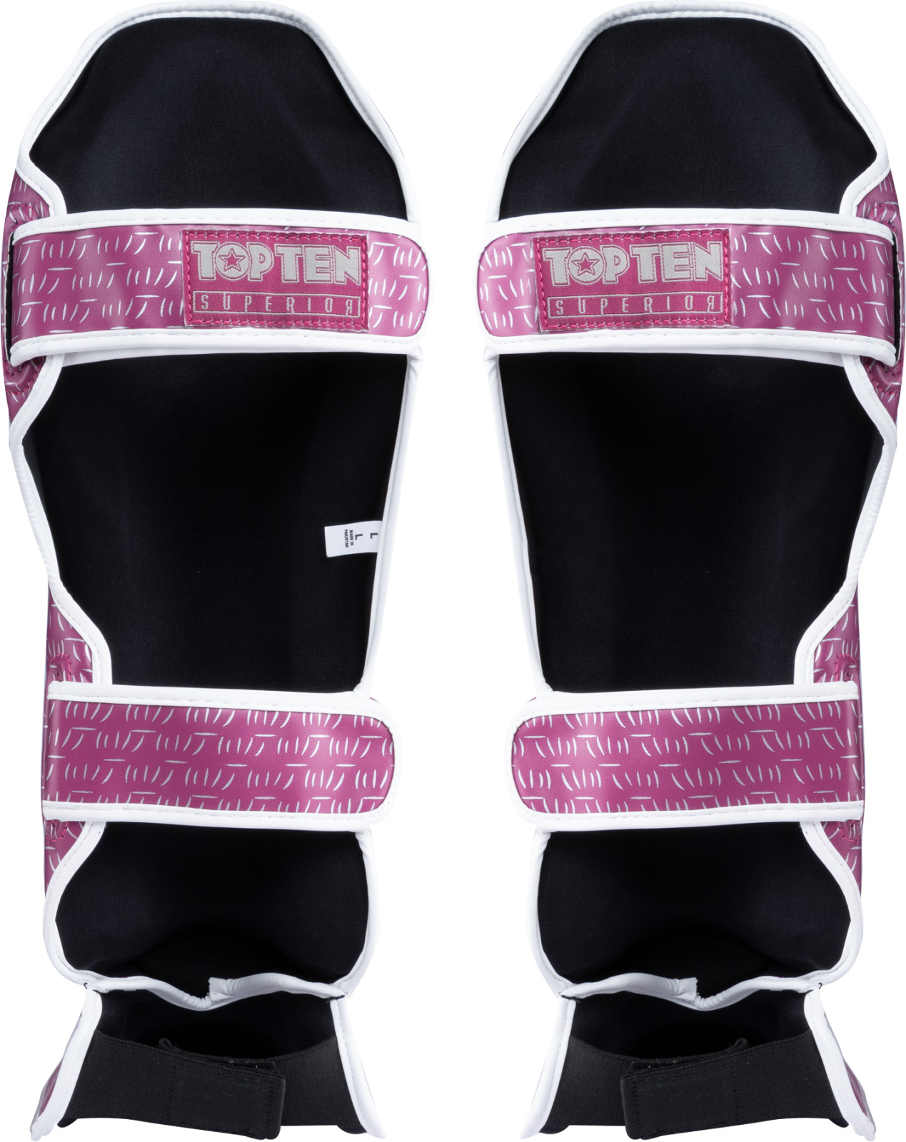 The unusual design of the “Superior” collection ensures that you stand out from the crowd. With an excellent cushioning system and individual adjustment options, the shin guards offer you a great look and first-class protection. Hit zones on the shin and instep subject to exceptionally high stress are additionally reinforced to guarantee the highest level of safety with the “Superior” protectors. The robust front of synthetic leather is perfectly designed to meet the demands of demanding everyday training. Thanks to the skin-friendly inside, strong hook and loop fasteners, and elastic foot straps, you can fully concentrate on your training with the TOP TEN “Superior” shin guard.