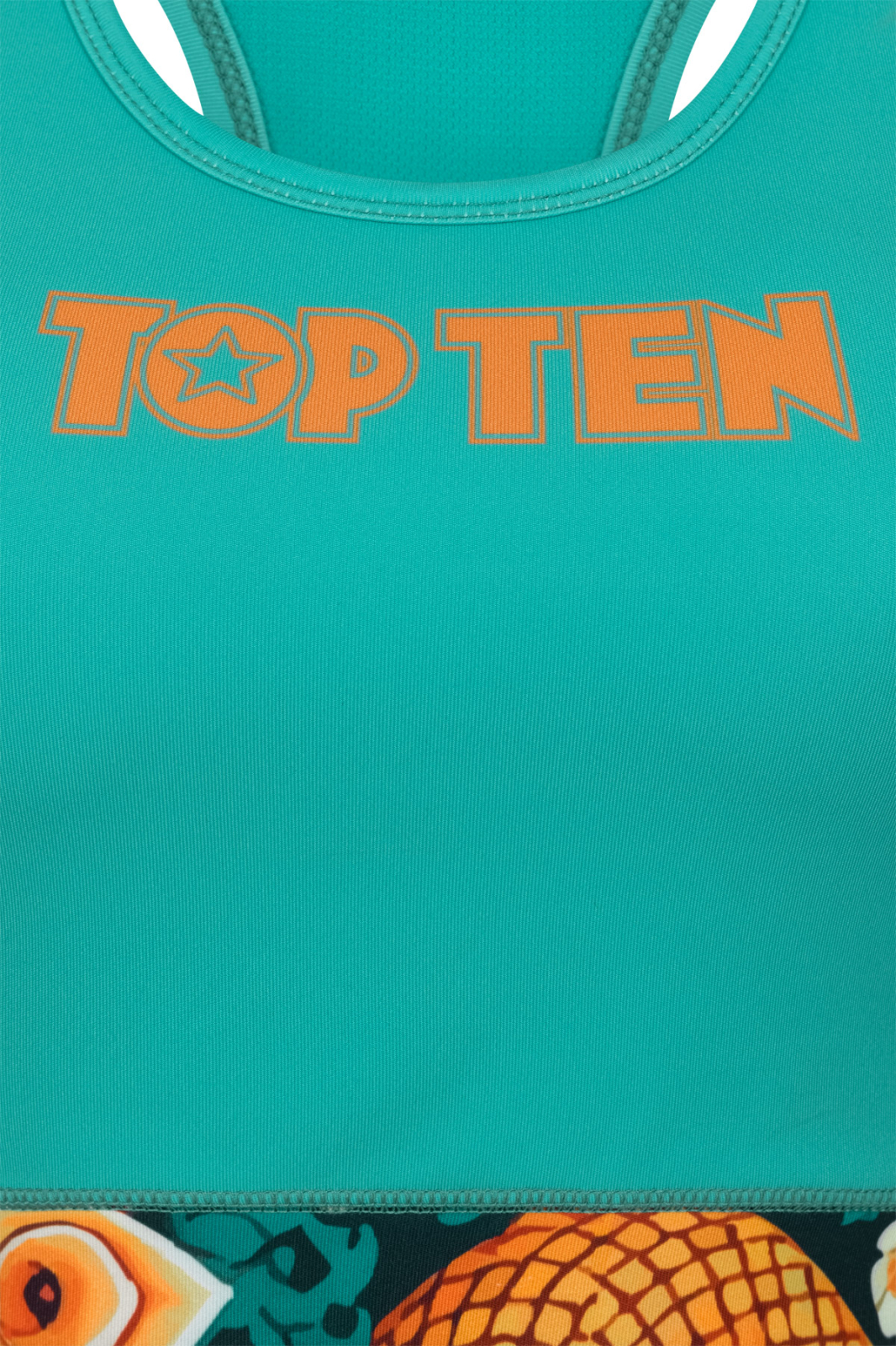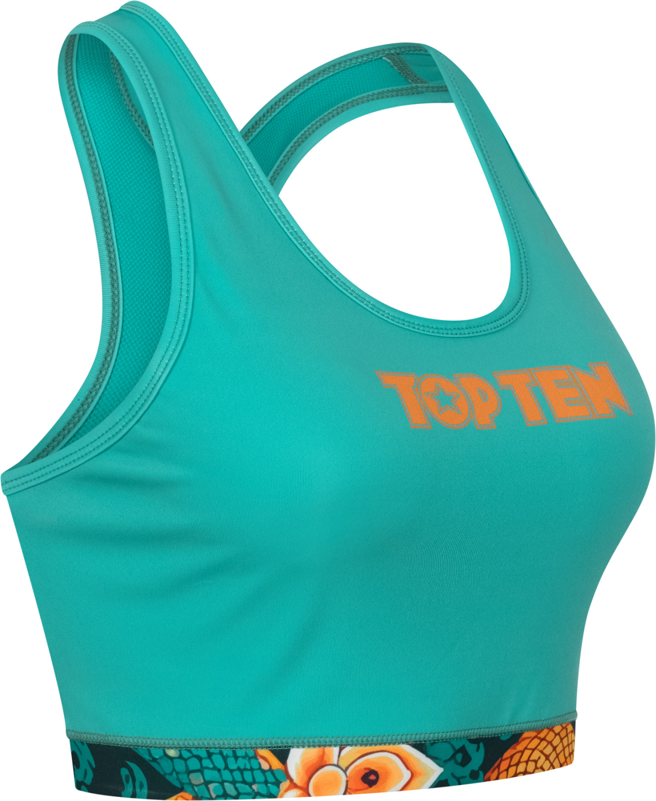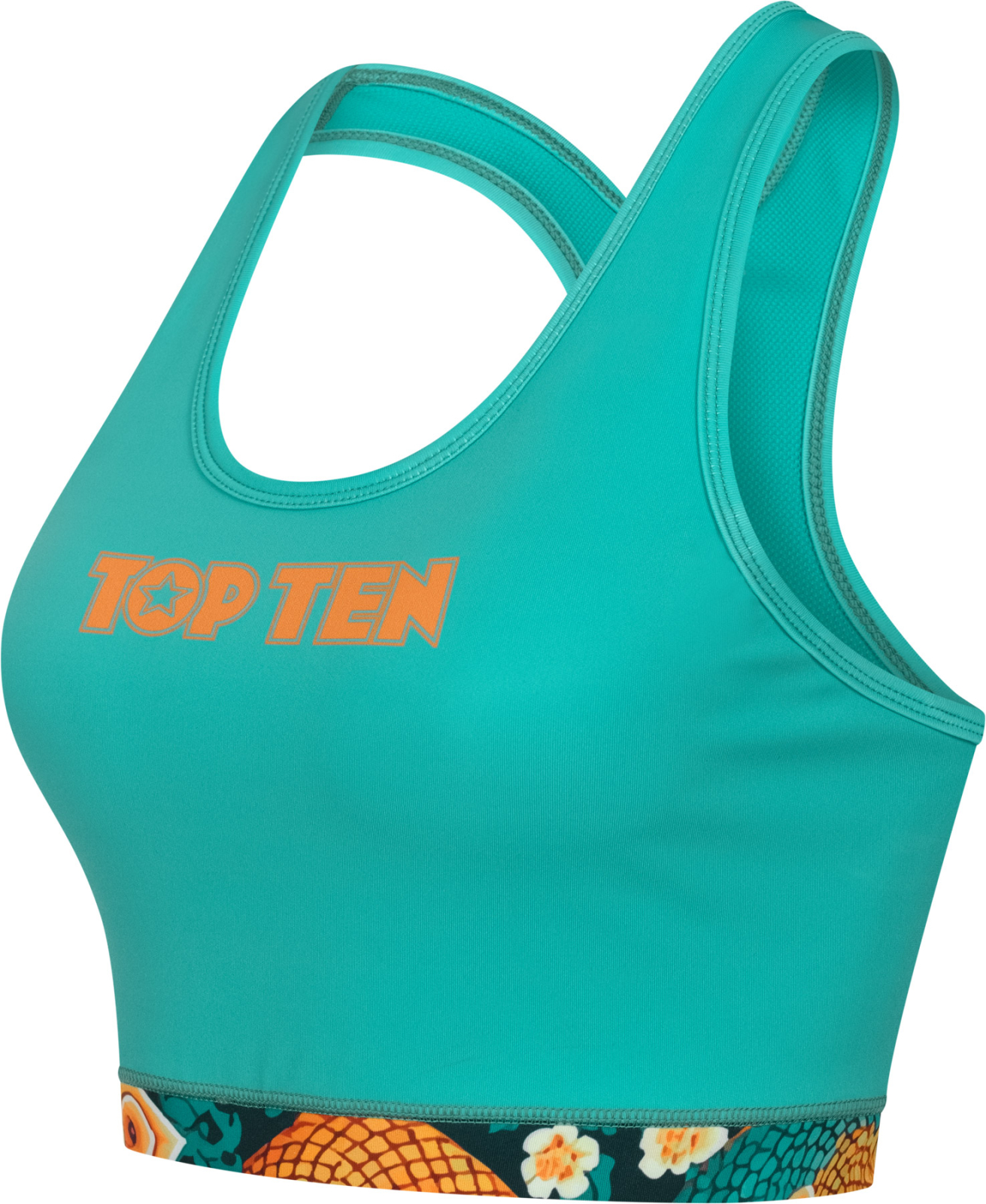 Feel free and move however you want. The TOP TEN "Ryu del Mar" Sports Bra supports you in every activity, whether it's Zumba, fitness boxing, yoga, Pilates, or HIIT. With a blend of polyester and elastane, it feels smooth against the skin. Wide straps and a racerback cut prevent the bustier from slipping. Double-layered and with removable soft cups, the "Ryu del Mar" bra offers light to medium support for sports and leisure activities.