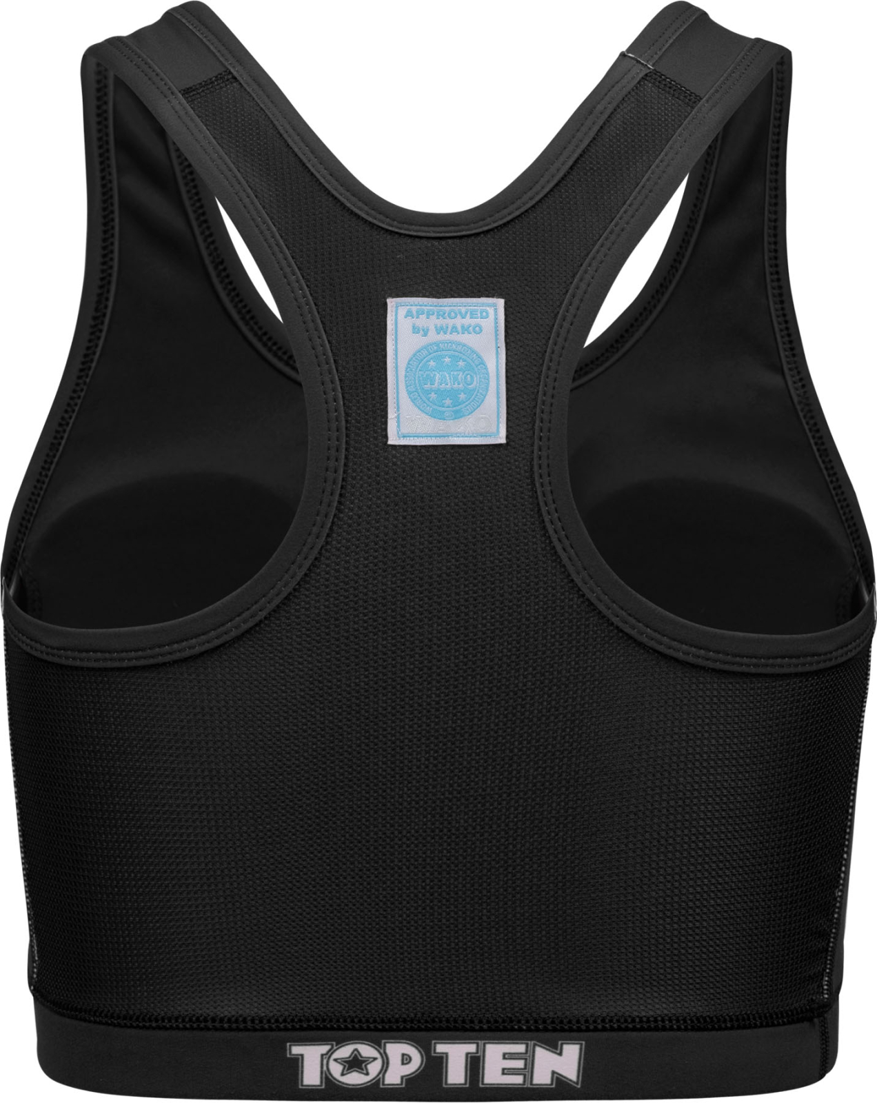 The TOP TEN Sports Bra “WAKO” is the perfect companion for all female kickboxers who want to really go for it in full contact, K1 and Kicklight. With its flexible fabric, the bra adapts perfectly to every movement, so you always feel free and safe. It is 100% opaque and comes with removable soft cups for even more comfort. The TOP TEN bra is available in the competition colors red and blue, with the WAKO-approved label on the back – ideal for shining in the ring and during training.