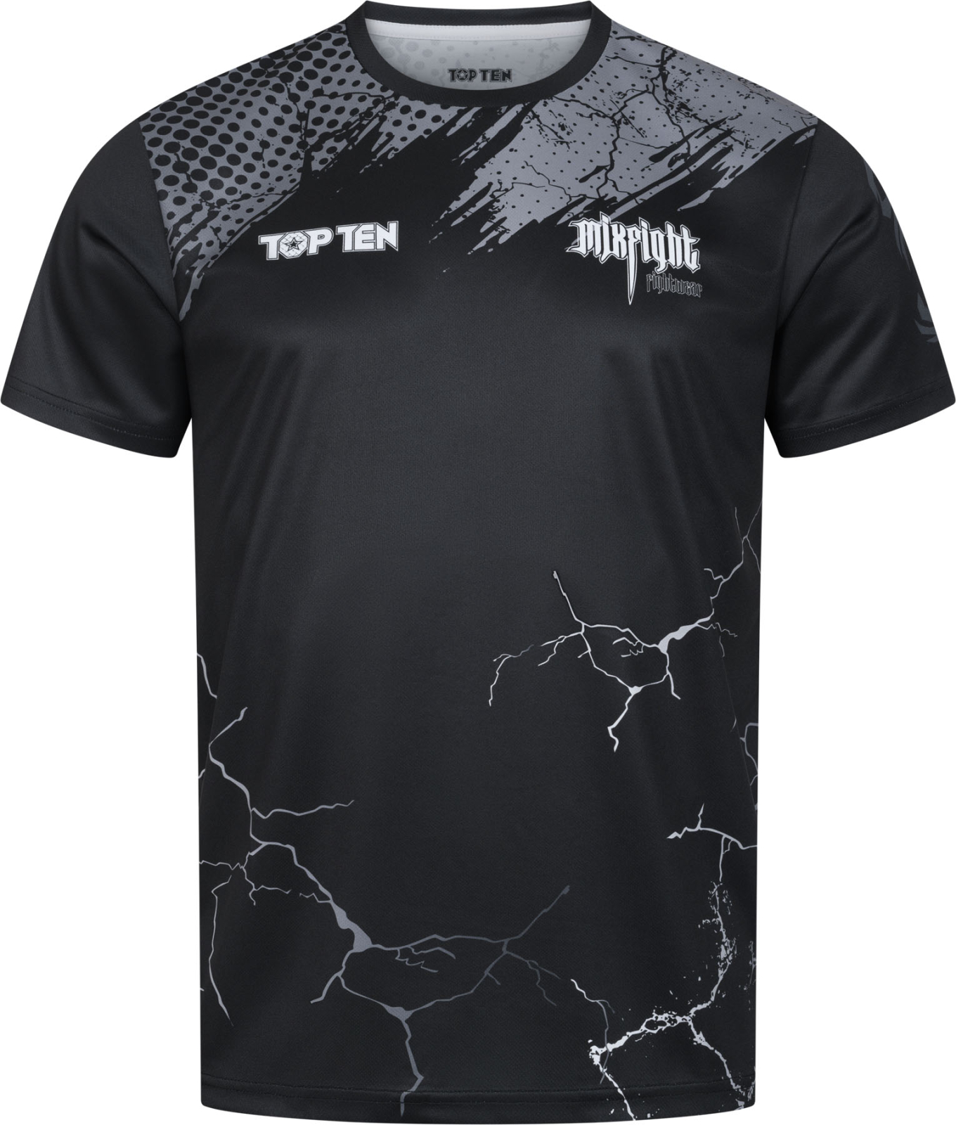 The TOP TEN MMA T-shirt “Mixfight Gorilla” is your statement of power and style – whether in the cage, during training, or in your free time. The lightweight, breathable functional material ensures maximum comfort, while the striking gorilla print underlines your fighter mentality. Double-stitched seams and a reinforced round neckline guarantee a durable fit. Thanks to the sublimated colors, the design remains intensely vibrant – and is even environmentally friendly. A TOP TEN shirt that perfectly combines performance and sustainability.