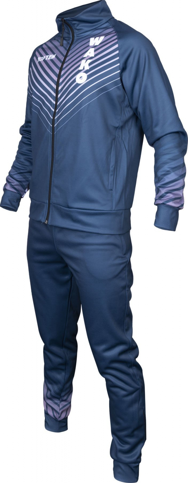 Rămâneți pe drumul cel bun și obțineți trenul „Wako Rail” din Top Ten ca costum de antrenament și prezentare pentru sportul dvs. Cu o etichetă Wako pe mânecă și imprimeu în piept, este un mijloc esențial de identificare pentru pasiunea ta sportivă, kickboxing. Deci, vă bucurați întotdeauna de cel mai confortabil confort. Cu o bună producție de căldură, îți împinge mușchii obosiți după antrenament și, cu potrivirea relaxată, asigură momente reale de bunăstare. Fermoarele de pe capetele piciorului facilitează punerea și decolerea repede, în timp ce aveți gestionarea climatică a „șinei Wako” sub control prin fermoarul de pe jachetă. Două buzunare cu fermoar pe sacou și pantaloni rotunjiți profesional costumul sportiv din două piese din două piese.