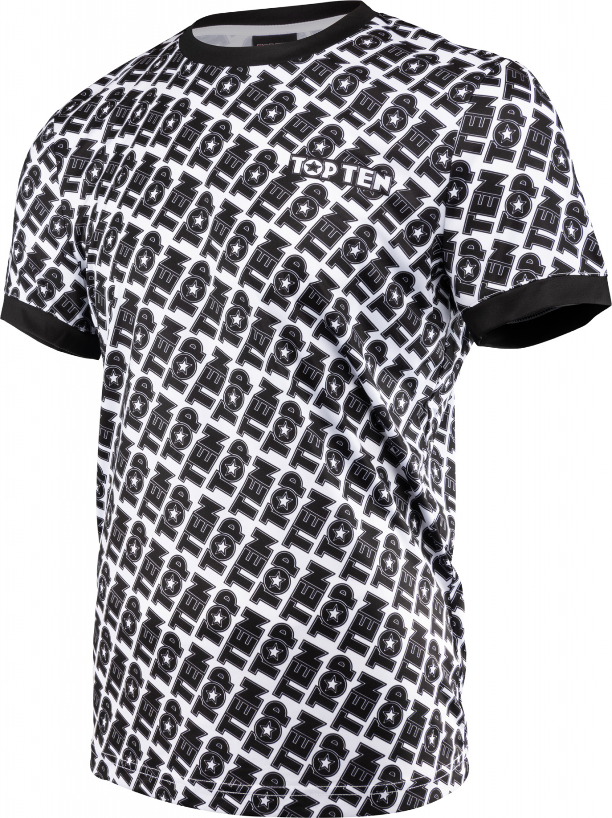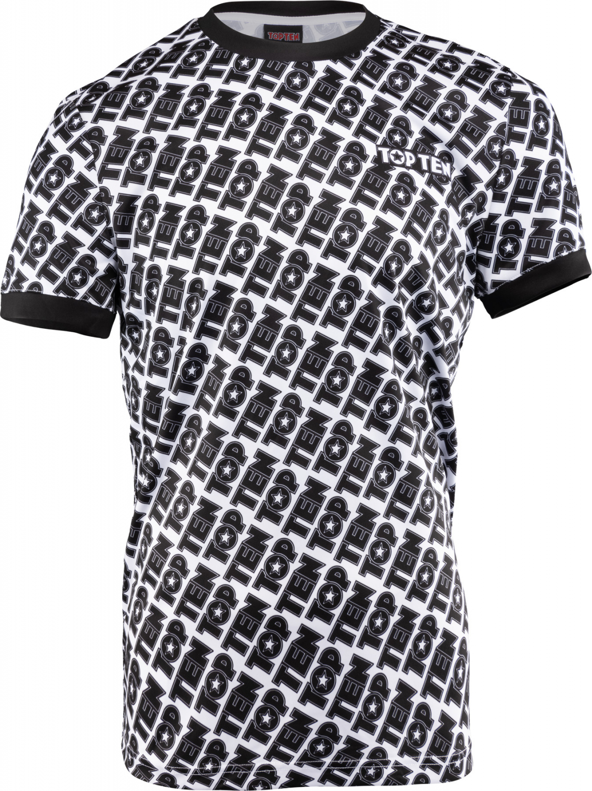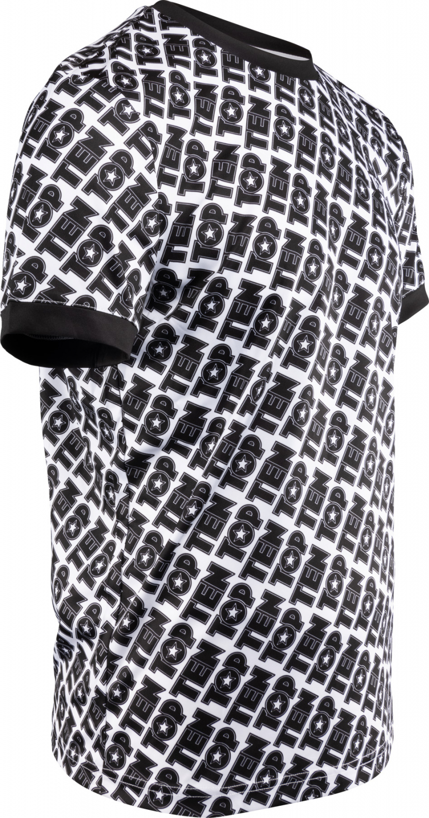 Acest lucru vă va atrage imediat atenția. Tricoul TOP TEN „Monogram” arată în mod clar mândria echipei tale ca imprimeu pe toată suprafața. Cu o croială sportivă, cămașa funcțională ușoară se adaptează mișcărilor tale și impresionează prin respirabilitatea sa . Gâtul clasic conferă cămășii sport, altfel dinamice, calmul de care are nevoie pentru a impresiona în viața de zi cu zi.