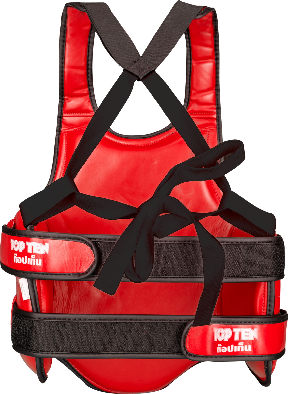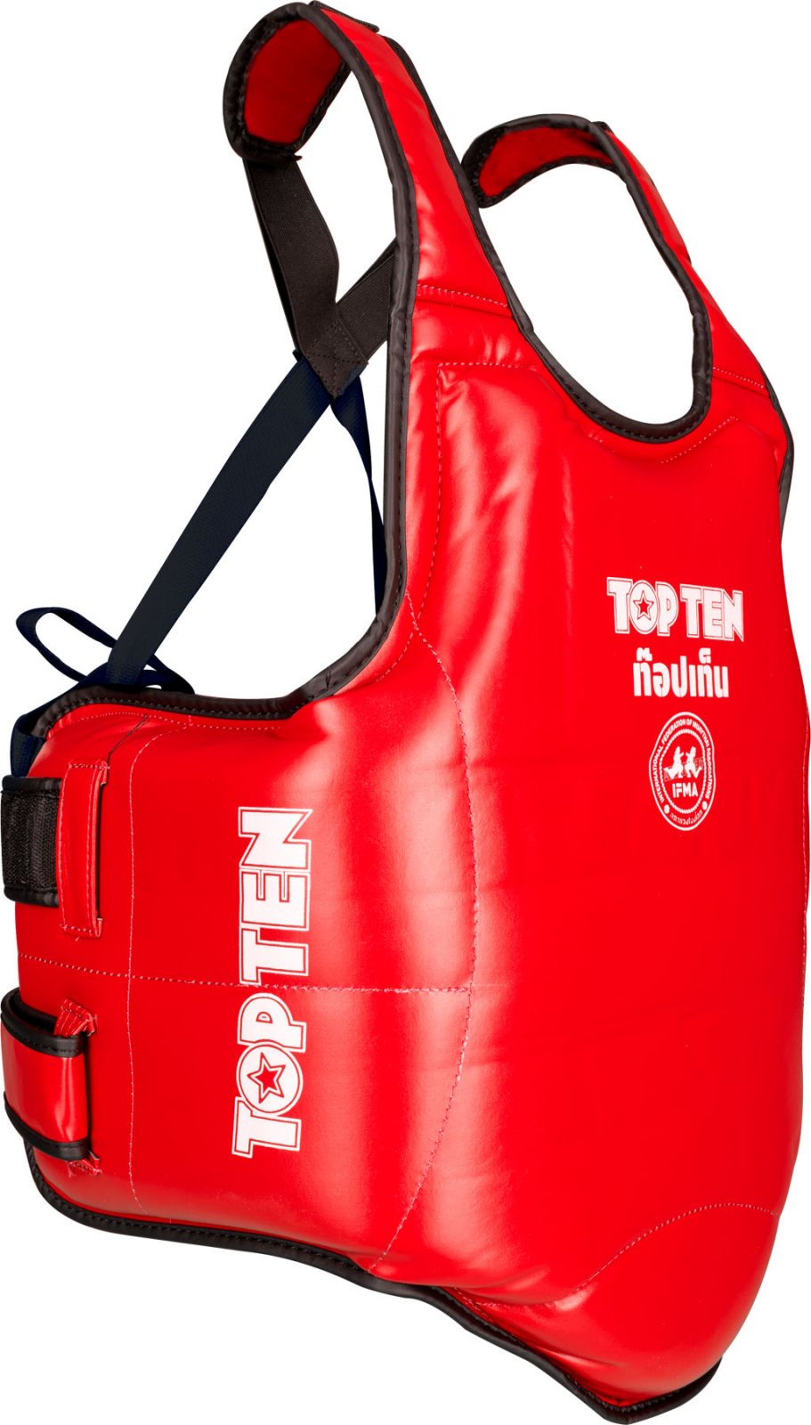 În Muay Thai, siguranța este esențială pentru performanță. TOP TEN “IFMA” Chest Protector a fost dezvoltat special pentru sportivii sub 23 de ani (U23) și îți oferă protecție completă împotriva loviturilor de braț și picior.